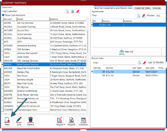 • From the customers summary, where you will see your existing customers. Click the “New” button. This will start a new record.