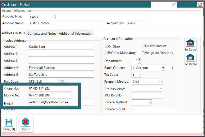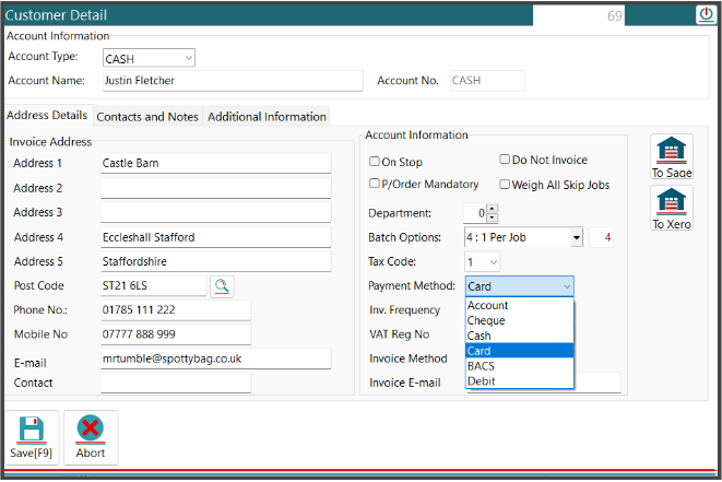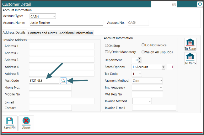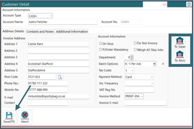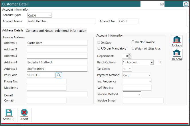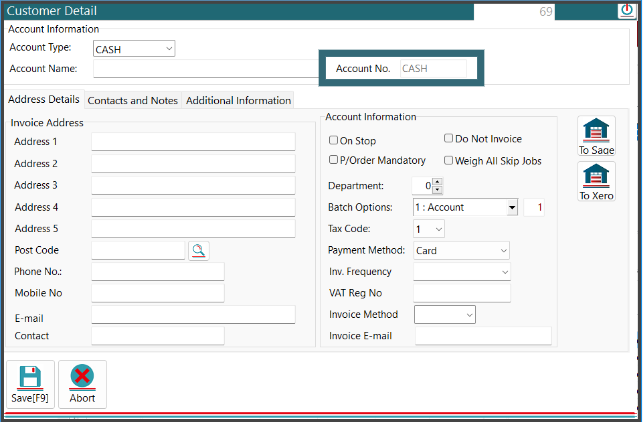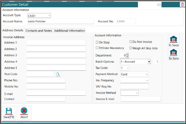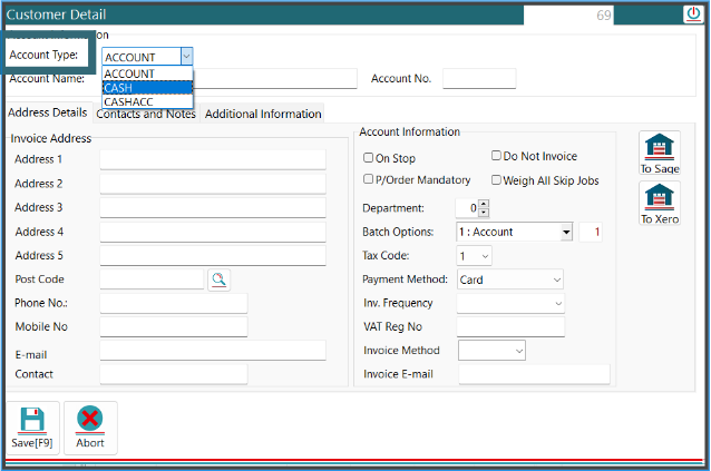 • Complete the Customer Details. From the Account Type option Select Cash.