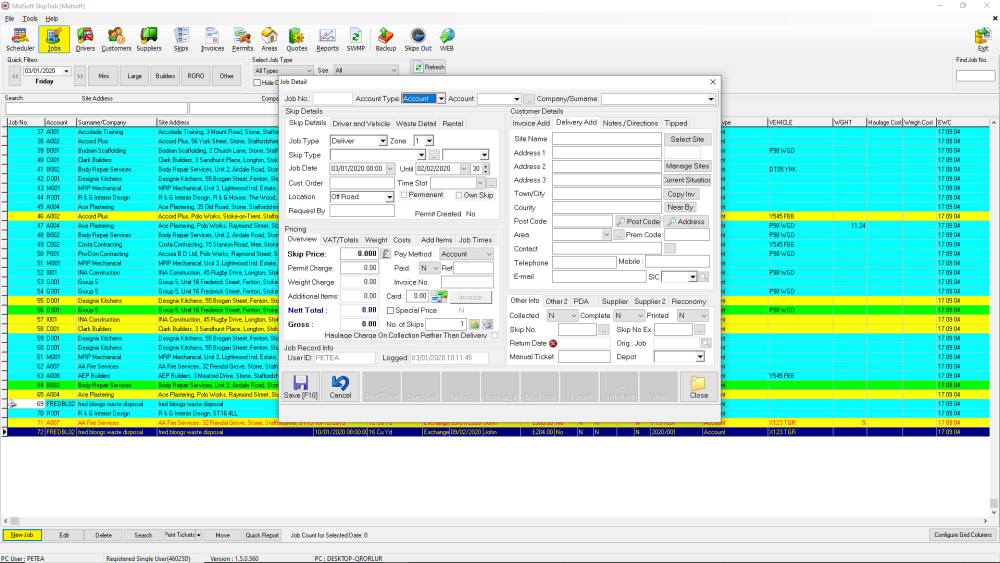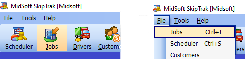 For an existing customer from the ribbon select the job icon as shown on the left below to open the job window
