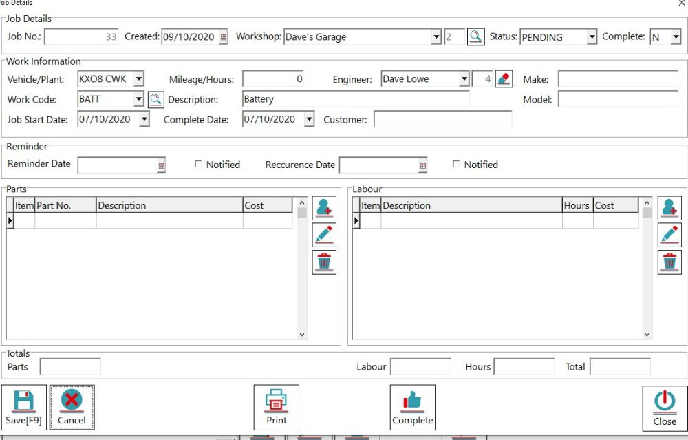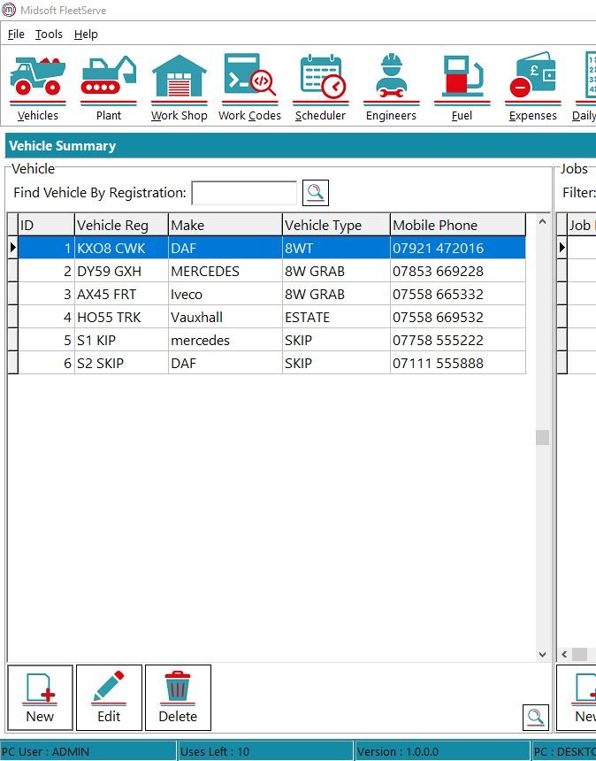 To Edit a job select the vehicle the job is for then on the jobs side highlight the job you wish to edit and click Edit.