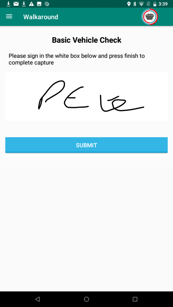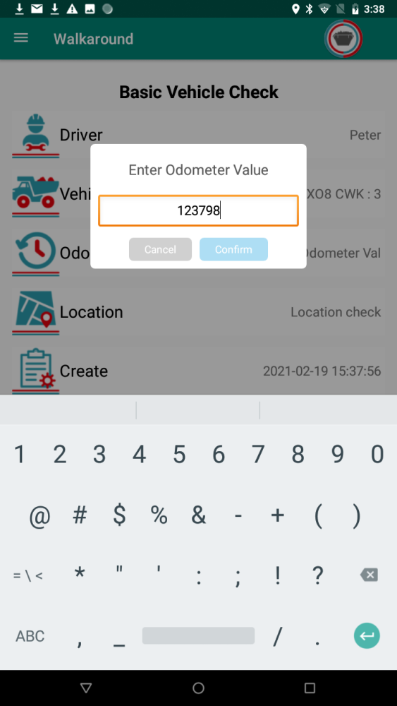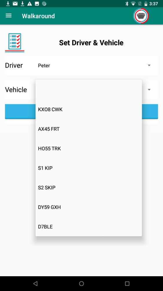 Then double check the correct name and vehicle have been selected, the system checks the location of the device and records the GPS location