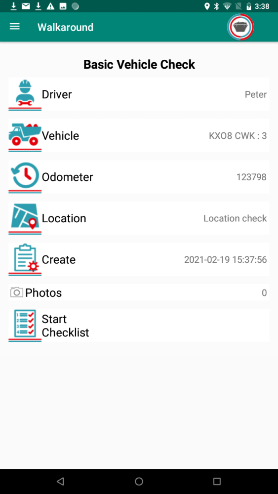 so you know as an operator that the check was done with the vehicle, once everything is correct click the Start Checklist Button