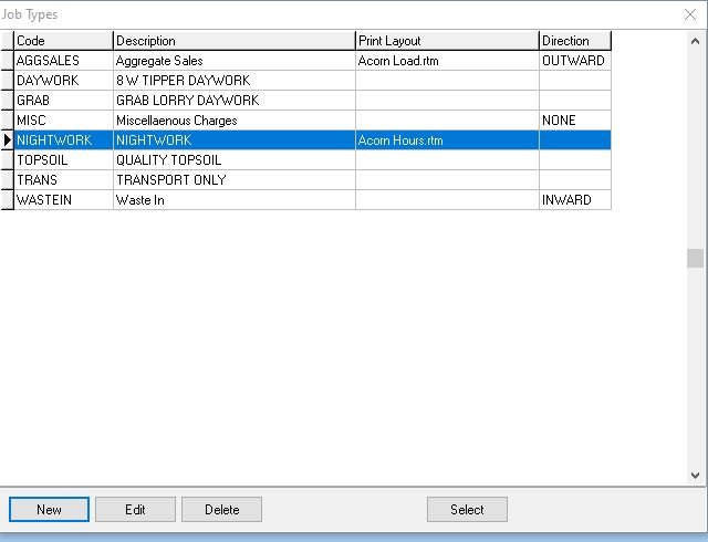 This Opens the Job Types window