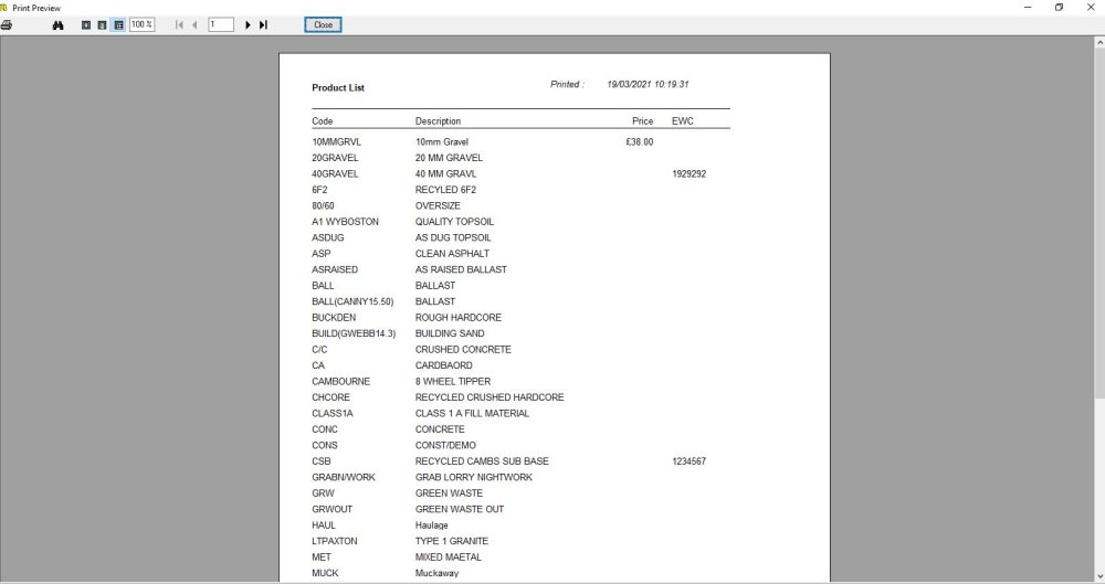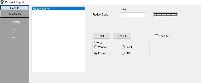 In this case I chose Products, choose between window, excel, PDF or the printer then click Print