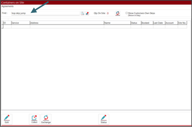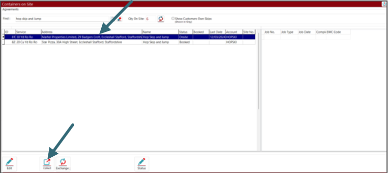 • You will now be presented with the “Containers on Site” for that customer. Here you can select the correct agreement and then click on the “Collect” button.