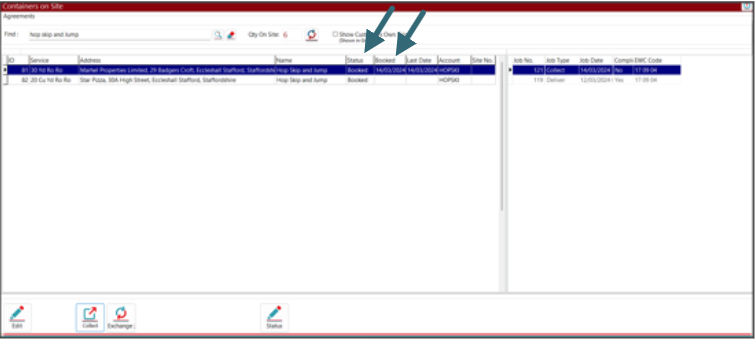 • The “Containers on Site” screen will be displayed and you will see that the status has now changed to booked and the date that you have selected will also be displayed.